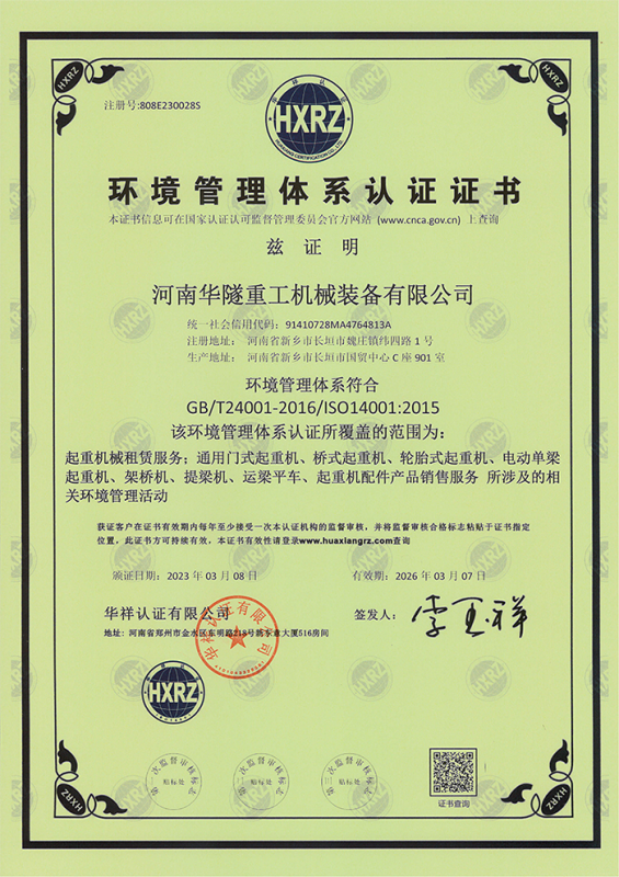 河南華隧重工機械裝備有限公司主要從事通用門式起重機、橋式起重機、電動單梁起重機,輪胎式起重機、架橋機、提梁機、遠梁平車、鋼絲繩電動萌蘆、卷揚機、起重配件制造、銷售:起重機械租賃、安裝和維修,起重設備園收,機械設備維修,鋼結構工程承包,橋梁工程及技術咨淘服務,銷售五金制品、機電設備:建設工程監理,建設工程設計,各類工程建設活動,建筑勞務分包,建筑物折除作業,施工作業,工程管理服務,土石方工程施工,裝如發運?! 」疽淹ㄟ^IS0國際質量、環境、健康與安全三合一標準認證,特種設備制造許可證和特種設備安裝改造維修許可證。擁有完熟的質量管理體系。嚴格的管理制度,強大的生產能力和先進的檢測手段,在保證產品質量的同時,也具備了極強的市場競爭力?! 」緢猿挚萍紕撔聻槔砟睿a品質量為核心,注重信譽,建立了減信可靠、快捷、思速。便利周到的售后服務網絡?! ∥覀儞碛械募夹g專家和技術服務隊伍為客戶提供充善的售前技術支持和全天候的售后服務體系,讓您無后顧之憂,享受一站式的超值服務?!  叭A隧重工,伴您成功“是華隧重工永遠的宗指,真被的希望與各界朋友攜手并進。共創輝準!